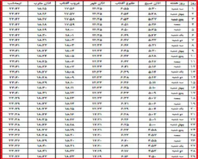 جدول اوقات شرعی شهرستان رشت ,اداره کل, فرهنگ و ارشاد اسلامی, استان ,گیلان, ساعات شرعی به افق رشت, اوقات شرعی ماه مبارک رمضان